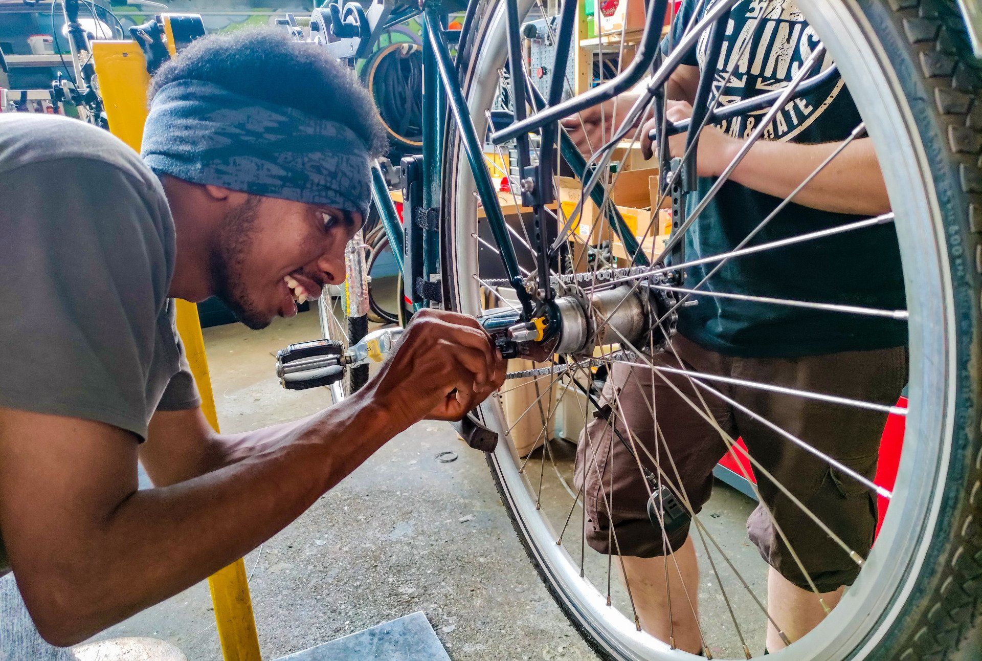 Wie funktioniert so ein Fahrrad eigentlich? Was passiert wenn ich bremse und schalte? Das erlernen die Kids bei unseren Workshops. Natürlich zeigen wir auch, wie ein Schlauch geflickt und ein Kabel angeschlossen wird.